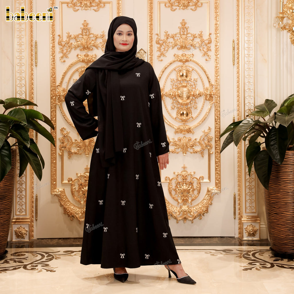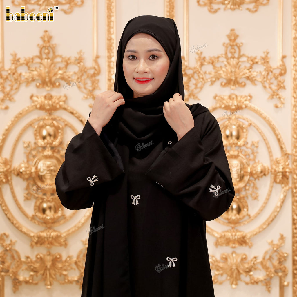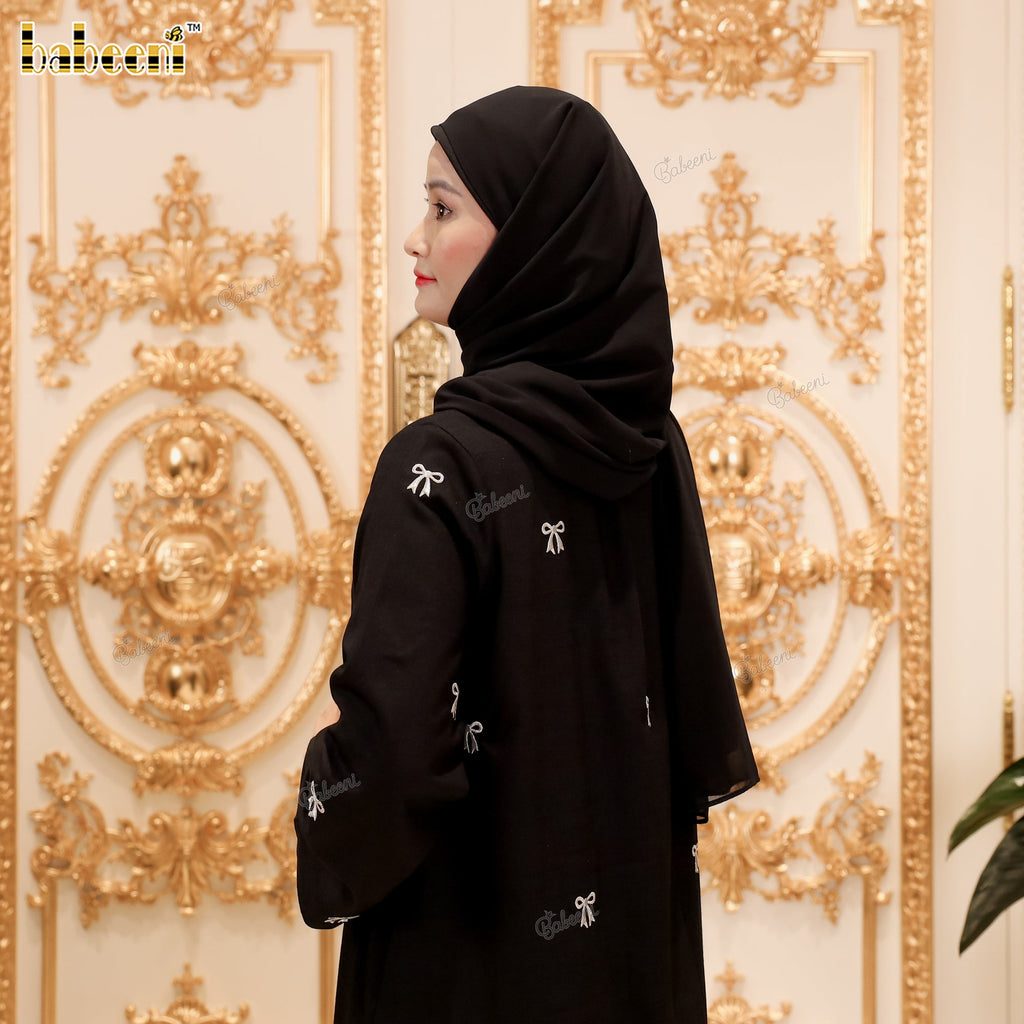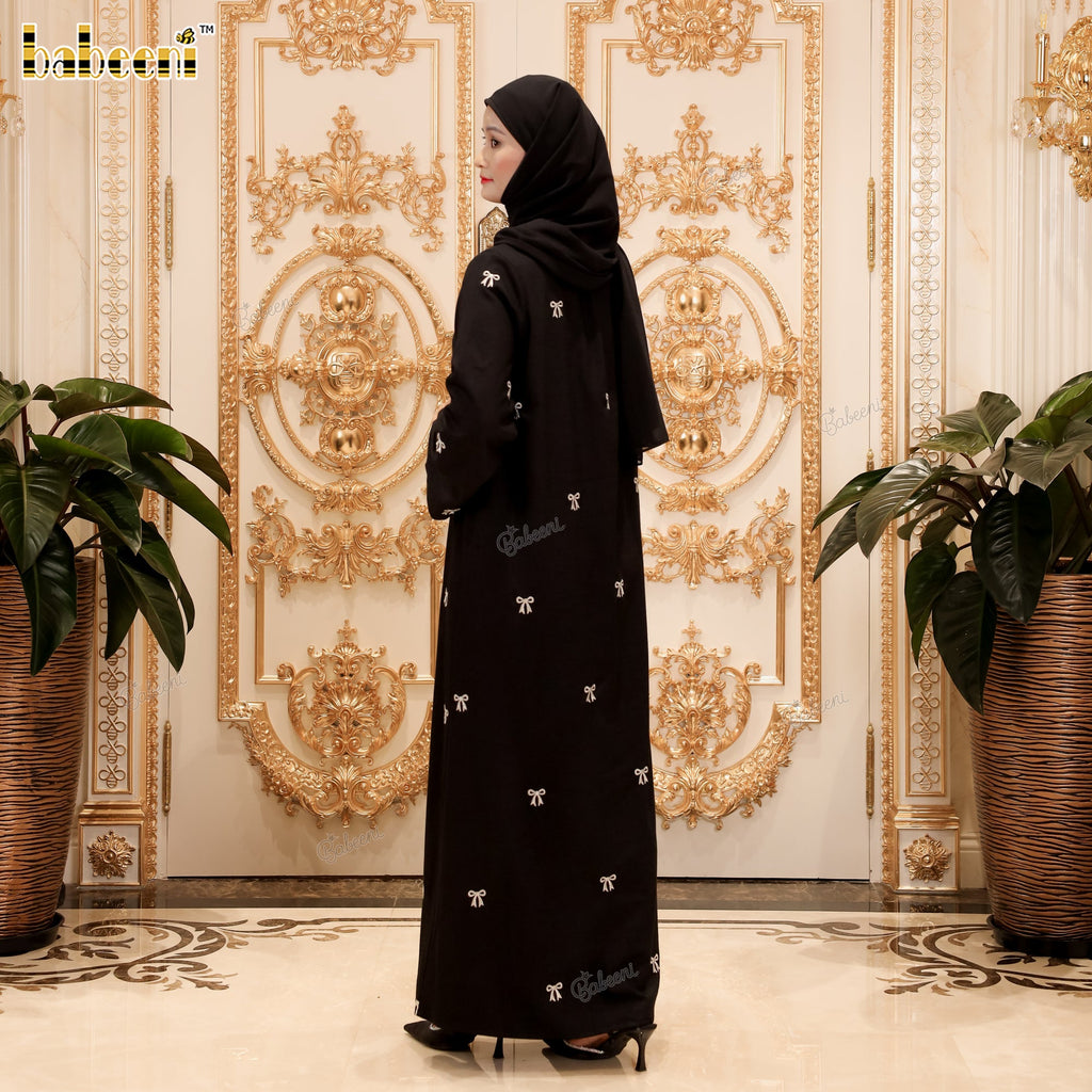 LD32 – Black Linen Abaya with Silver Bow Embroidery
