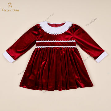 Flared Velvet Dress with Lace Accents and Corduroy Collar - VAG018