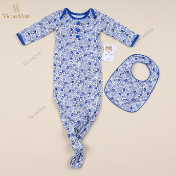 Baby Boy Floral Knot Gown with Matching Bib - VAI005