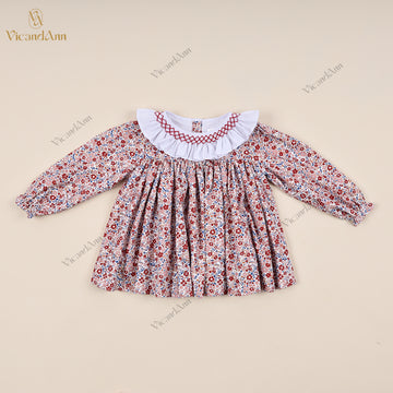 A-Line Corduroy Top with Smocked White Ruffle Collar - VAG029