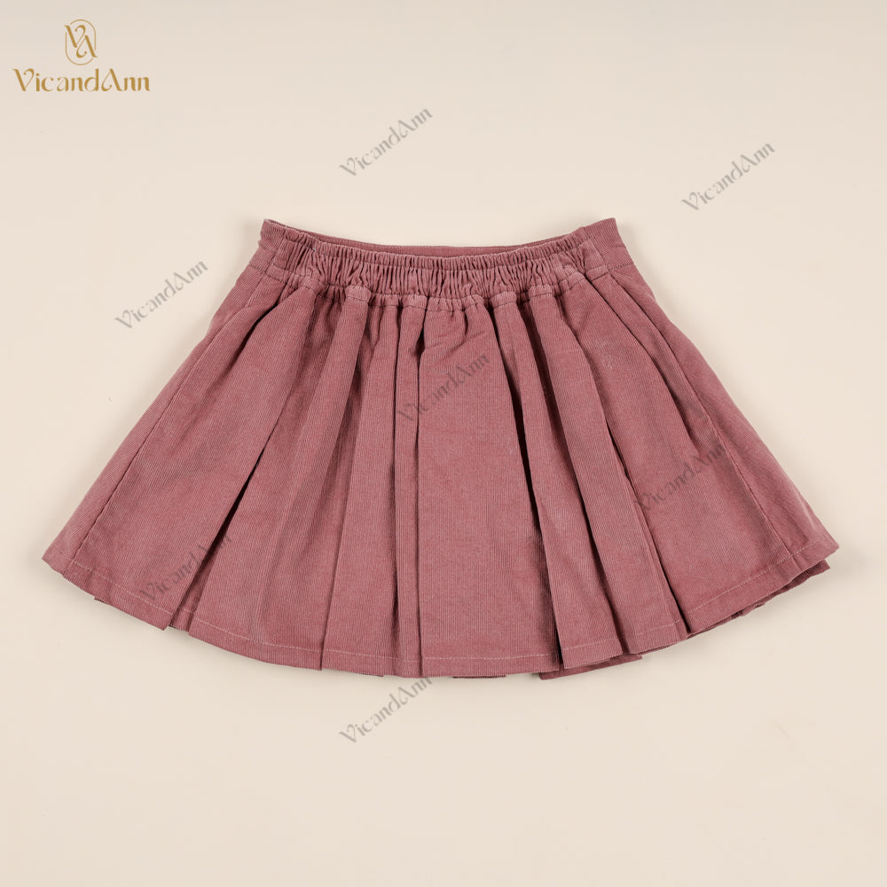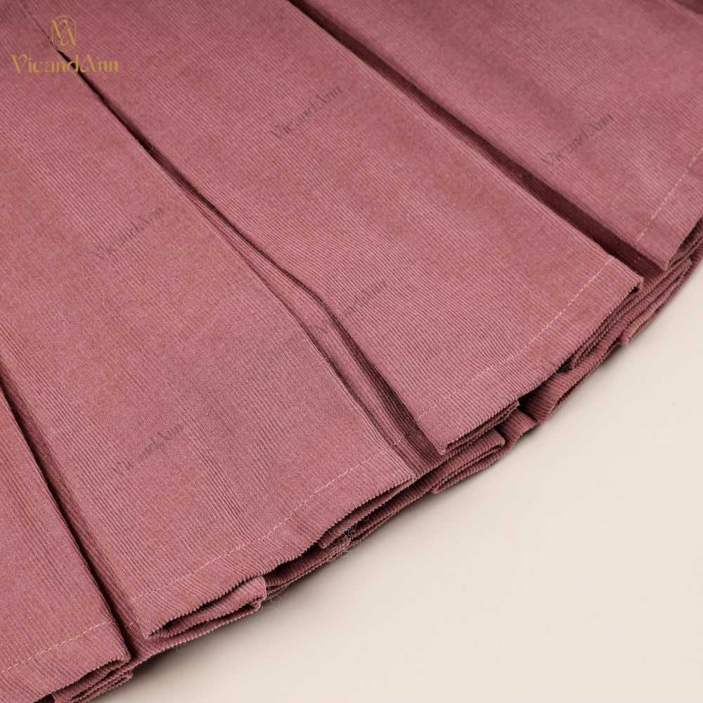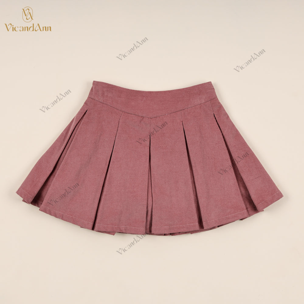 Box-Pleated Corduroy Skirt with Elastic Back - VAG024