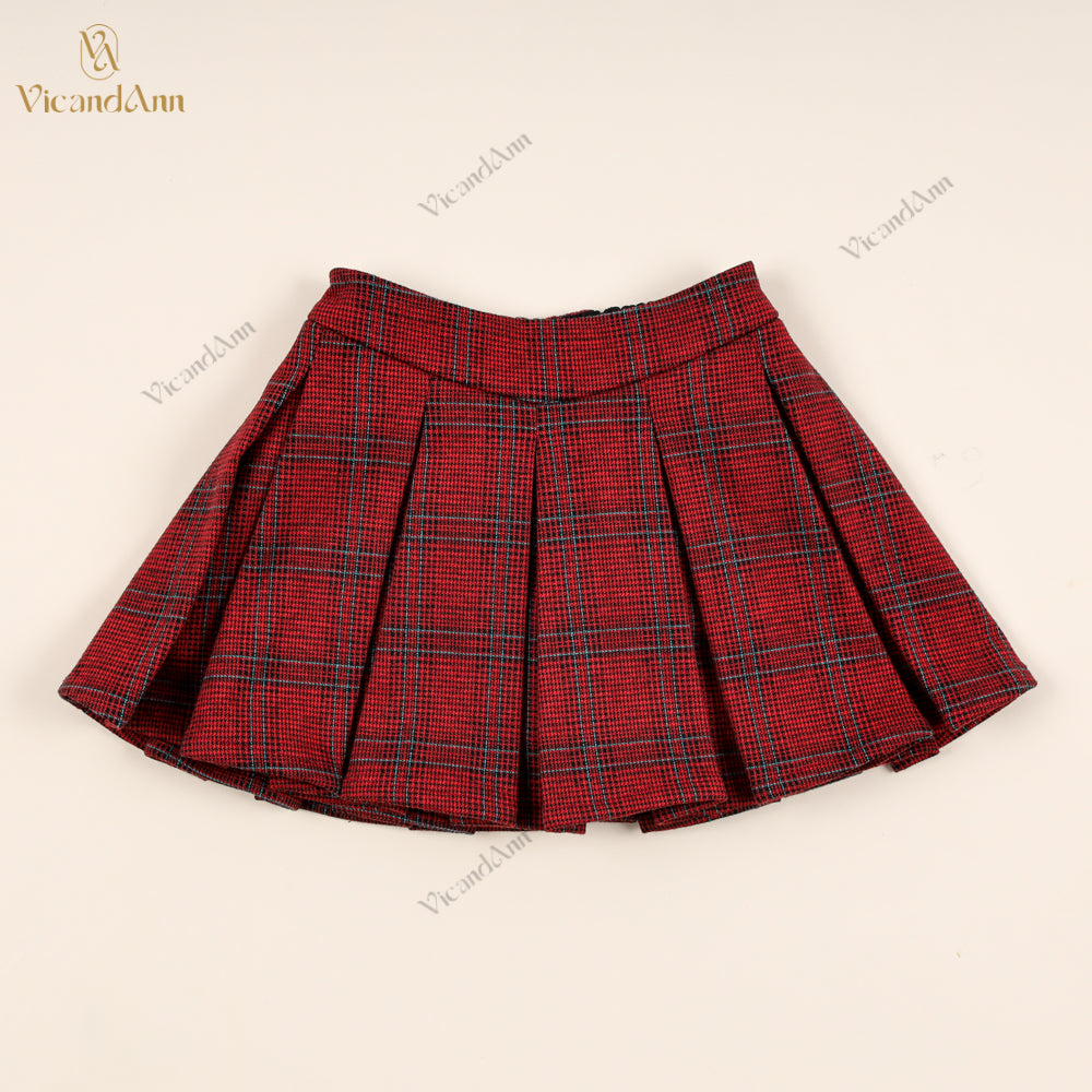 Plaid Velvet Skirt with Built-In Shorts - VAG028
